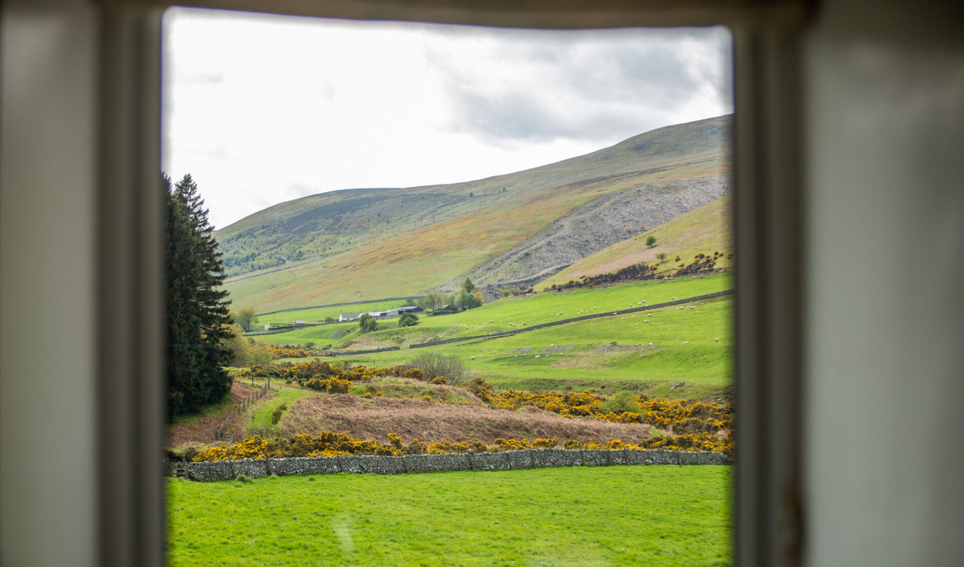This delightful single storey cottage sits on a small knoll between the two arms of the valley looking to the Border Ridge on one side and The Schil on the other with the junction of the Lambden and College burns below.